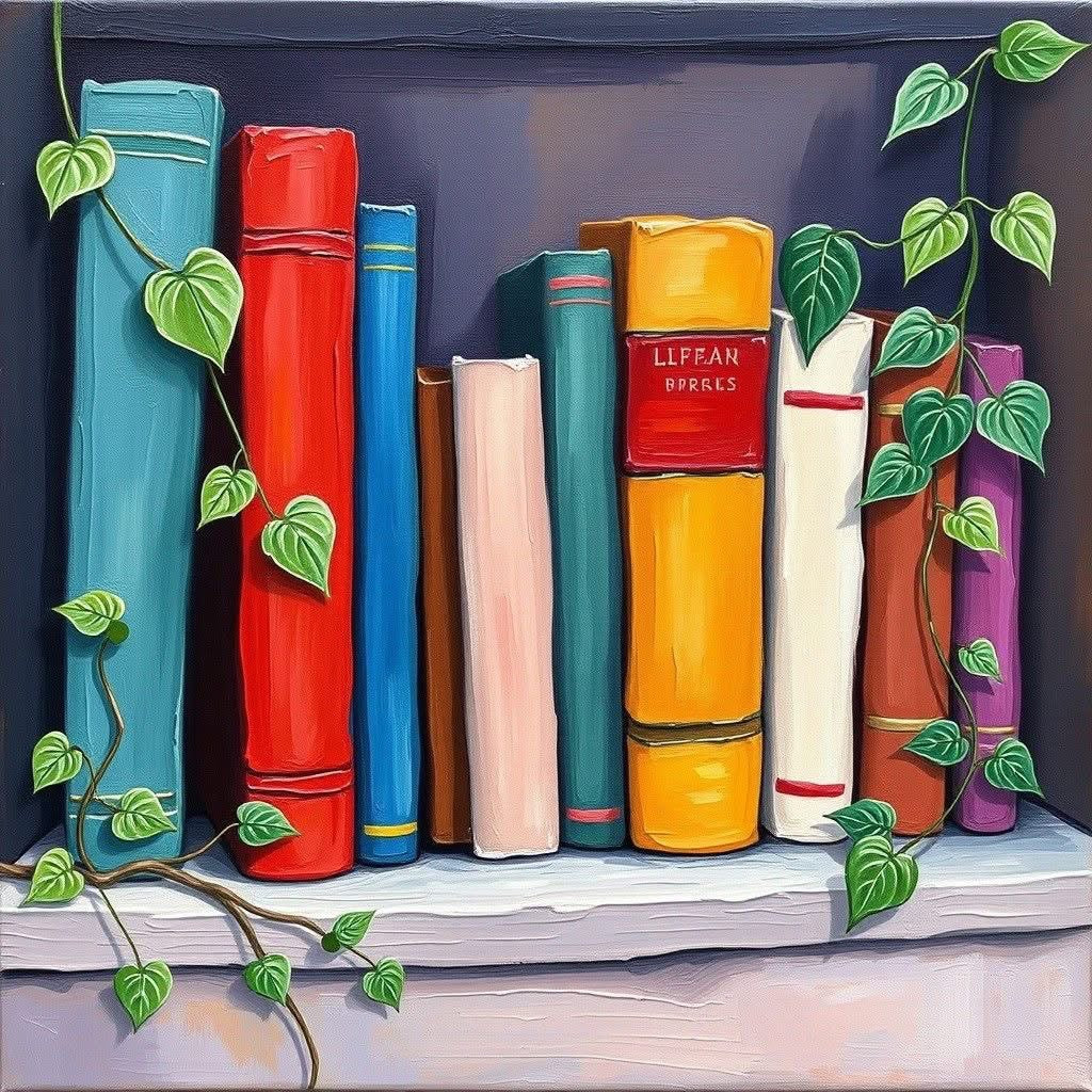 Join us for a relaxing and creative paint night as we bring this charming bookshelf scene to life! This guided class features a colorful stack of books nestled together with trailing greenery—perfect for book lovers, plant people, and anyone who loves a cozy aesthetic.